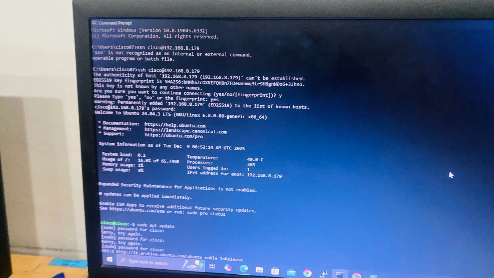 Successfully completed a full hands-on setup of a Linux-based server, including hardware-level configuration, Ubuntu Server installation, network setup, secure SSH access, system monitoring, and command-line administration.