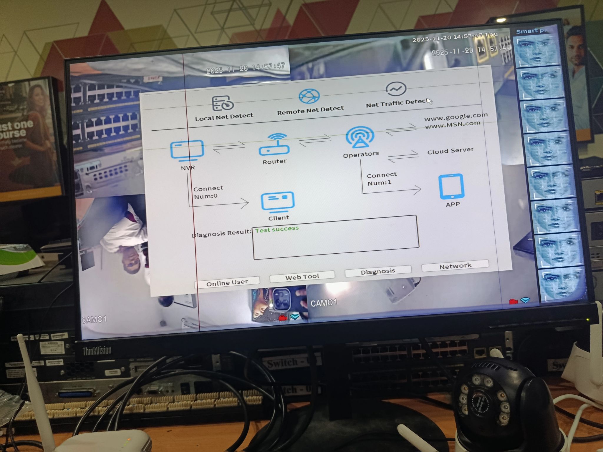 Successfully completed hands-on CCNA practical session configuring PTZ Wi-Fi cameras to a Wi-Fi NVR with seamless network connectivity, wireless networking proficiency, IP addressing, and integrated mobile phone access for remote monitoring and PTZ control.